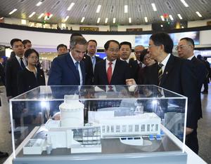 (250916) -- VIENA, 16 septiembre, 2025 (Xinhua) -- Imagen del 15 de septiembre de 2025 del director general del Organismo Internacional de Energía Atómica (OIEA), Rafael Grossi (i-frente), visitando una exposición que muestra el desarrollo de la energía nuclear de China, en Viena, Austria. La 69 Conferencia General del OIEA fue inaugurada aquí el lunes, centrándose en el uso pacífico de la energía y la tecnología nucleares y en la urgente necesidad de proteger el régimen global de no proliferación nuclear. (Xinhua/He Canling) (jg) (ra) (vf)