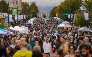 (250915) — VANCOUVER, 15 septiembre, 2025 (Xinhua) — Imagen del 14 de septiembre de 2025 de personas caminando por una calle cerrada durante el evento anual del Día sin Automóviles, en Vancouver, Columbia Británica, Canadá. El evento comunitario anual se celebró aquí el domingo, con 20 manzanas de calles cerradas y transformadas en un entorno peatonal con el objetivo de promover el transporte sostenible y la cultura vecinal. (Xinhua/Liang Sen) (oa) (ah) (vf)