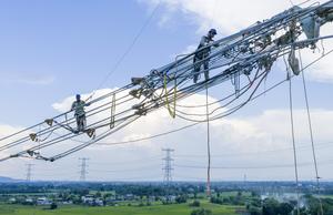 (250916) -- HEFEI, 16 septiembre, 2025 (Xinhua) -- Imagen tomada con un dron el 16 de septiembre de 2025 de trabajadores realizando tareas de cableado para el proyecto de transmisión de corriente continua de ultra alta tensión de ±800 kV entre Gansu y Zhejiang, en el distrito de Nanling, en Wuhu, en la provincia de Anhui, en el este de China. La línea eléctrica de 2.370 kilómetros comienza en Wuwei, en la provincia de Gansu, y termina en Shaoxing, en la provincia de Zhejiang. (Xinhua/Liu Junxi) (oa) (ah) (ce)