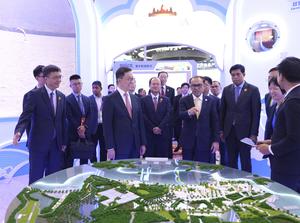 (250917) -- NANNING, 17 septiembre, 2025 (Xinhua) -- El vicepresidente chino, Han Zheng, visita la exhibición de la 22ª Exposición China-ASEAN y se comunica con los expositores después de la ceremonia inaugural de la exposición y la Cumbre de Negocios e Inversión China-ASEAN, en Nanning, en la región autónoma de la etnia zhuang de Guangxi, en el sur de China, el 17 de septiembre de 2025. Han pronunció un discurso en la ceremonia inaugural el miércoles. (Xinhua/Ding Lin) (jg) (da) (ce)