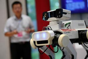 (250917) -- XI'AN, 17 septiembre, 2025 (Xinhua) -- Imagen del 17 de septiembre de 2025 de un perro robot utilizado en un proyecto de protección digital para una antigua pagoda de madera durante una exposición del Foro de Digitalización del Patrimonio Cultural de la Conferencia Mundial de Internet 2025, en Xi'an, en la provincia de Shaanxi, en el noroeste de China. El foro fue inaugurado el miércoles en Xi'an, hogar de los mundialmente famosos Guerreros de Terracota. (Xinhua/Li Yibo) (jg) (da) (vf)