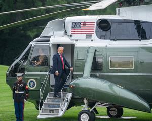 (250916) -- WASHINGTON, 16 septiembre, 2025 (Xinhua) -- El presidente estadounidense, Donald Trump, sube a bordo del Marine One en la Casa Blanca previo a su partida para una visita de Estado a Reino Unido, en Washington, D.C., Estados Unidos, el 16 de septiembre de 2025. (Xinhua/Hu Yousong) (oa) (ah)