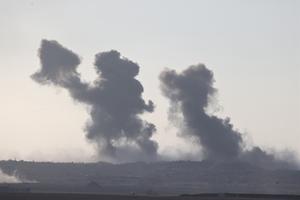 (250916) -- JERUSALEN, 16 septiembre, 2025 (Xinhua) -- Humo se eleva desde edificios dañados en la Franja de Gaza, visto desde el sur de Israel, el 16 de septiembre de 2025. El Ejército israelí anunció el martes que había lanzado una "operación terrestre a gran escala" en la Ciudad de Gaza durante la noche, mientras que las autoridades locales informaban de intensos ataques en el mayor centro urbano del enclave, que dejaron docenas de muertos y desaparecidos. (Xinhua/Jamal Awad) (oa) (ah) (vf)