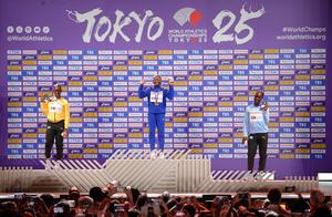 (250915) -- TOKIO, 15 septiembre, 2025 (Xinhua) -- La medallista de oro, Melissa Jefferson-Wooden (c), de Estados Unidos, la medallista de plata, Tina Clayton (i), de Jamaica y la medallista de bronce, Julien Alfred, de Santa Lucía, posan durante la ceremonia de premiación de los 100 m femeninos en el Campeonato Mundial de Atletismo 2025, en Tokio, Japón, el 15 de septiembre de 2025. (Xinhua/Ju Huanzong) (rtg) (ah) (vf)