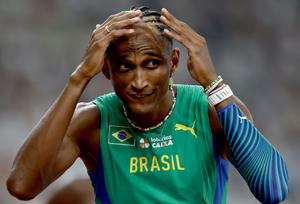 (250917) -- TOKIO, 17 septiembre, 2025 (Xinhua) -- Alison Dos Santos, de Brasil, reacciona al término de la semifinal de 400m con vallas masculinos, en el Campeonato Mundial de Atletismo de 2025, en Tokio, Japón, el 17 de septiembre de 2025. (Xinhua/Wang Lili) (jg) (da) (ce)
