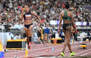(250916) -- TOKIO, 16 septiembre, 2025 (Xinhua) -- Yulimar Rojas (i), de Venezuela, compite durante la clasificación de triple salto de triple salto femenino en el Campeonato Mundial de Atletismo de 2025, en Tokio, Japón, el 16 de septiembre de 2025. (Xinhua/Song Yanhua) (oa) (ah) (vf)