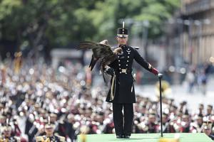 (250916) -- CIUDAD DE MEXICO, 16 septiembre, 2025 (Xinhua) -- Un elemento del Heroico Colegio Militar participa en el Desfile Cívico Militar en conmemoración del 215 aniversario de la Independencia de México, en la Ciudad de México, capital de México, el 16 de septiembre de 2025. México celebró el martes el aniversario 215 del inicio de la lucha independentista contra el colonialismo español con la realización del tradicional Desfile Cívico Militar en la Ciudad de México, con la particularidad de que por primera ocasión se presentaron honores y se rindió el parte de novedades a una mujer, Claudia Sheinbaum, primera presidenta y comandanta suprema de las Fuerzas Armadas del país latinoamericano. (Xinhua/Francisco Cañedo) (fc) (oa) (ah) (ce)