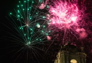 (250916) -- OAXACA, 16 septiembre, 2025 (Xinhua) -- Imagen del 15 de septiembre de 2025 de fuegos artificiales en la ceremonia del "Grito de Dolores" para celebrar el Día de la Independencia de México, en la plaza del Zócalo, en la ciudad de Oaxaca, en el estado de Oaxaca, México. México celebra su Día de la Independencia el 16 de septiembre. (Xinhua/Li Mengxin) (oa) (ah) (vf)
