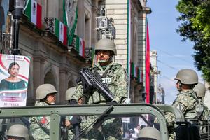 (250916) -- OAXACA, 16 septiembre, 2025 (Xinhua) -- Elementos del Ejército mexicano participan durante el Desfile Cívico-Militar con motivo del 215 Aniversario de la Independencia de México, en la ciudad de Oaxaca, en el estado de Oaxaca, México, el 16 de septiembre de 2025. (Xinhua/Li Mengxin) (jg) (ra) (ce)