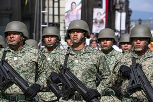 (250916) -- OAXACA, 16 septiembre, 2025 (Xinhua) -- Elementos del Ejército mexicano marchan durante el Desfile Cívico-Militar con motivo del 215 Aniversario de la Independencia de México, en la ciudad de Oaxaca, en el estado de Oaxaca, México, el 16 de septiembre de 2025. (Xinhua/Li Mengxin) (jg) (ra) (ce)