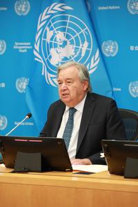 (250916) — NACIONES UNIDAS, 16 septiembre, 2025 (Xinhua) — El secretario general de la ONU, António Guterres, habla con la prensa en la sede de la ONU, en Nueva York, el 16 de septiembre de 2025. Guterres indicó el martes que las iniciativas globales propuestas por China son totalmente compatibles con la Carta de las Naciones Unidas. (Xinhua/Xie E) (jg) (ra) (ce)