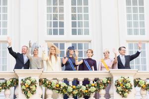 (250917) -- LA HAYA, 17 septiembre, 2025 (Xinhua) -- (De izq. a der.) Imagen del 16 de septiembre de 2025 del rey Guillermo Alejandro, la reina Máxima, la princesa Amalia, la princesa Ariane, la princesa Alexia, la princesa Laurentien y el príncipe Constantino de Países Bajos saludando a las personas desde el balcón del Palacio Noordeinde en el Prinsjesdag, o Día del Príncipe, en La Haya, Países Bajos. El tercer martes de septiembre se celebra el Día del Príncipe en Países Bajos, que marca la apertura de la temporada parlamentaria neerlandesa, y en este día el monarca reinante presenta los planes del gobierno para el año siguiente. (Xinhua/Sylvia Lederer) (jg) (da) (ce)