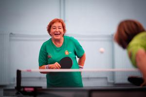 (250917) -- VARSOVIA, 17 septiembre, 2025 (Xinhua) -- Imagen del 16 de septiembre de 2025 de una participante compitiendo durante un partido de tenis de mesa de los VII Juegos Olímpicos de la Tercera Edad, en Varsovia, Polonia. Los Juegos Olímpicos de la Tercera Edad de Varsovia, un evento deportivo anual para personas de 60 años en adelante, se lleva a cabo este año del 14 al 20 de septiembre. (Xinhua/Jaap Arriens) (ah) (ce)