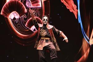 (250921) -- MANAMA, 21 septiembre, 2025 (Xinhua) -- Imagen del 20 de septiembre de 2025 de un actor de la compañía artística de Chengdu durante una presentación titulada "Compartiendo la belleza de la luna" en el Teatro Nacional de Bahréin, en Manama, Bahréin. (Xinhua/Wang Haizhou) (oa) (ah)