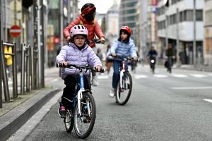(250921) -- BRUSELAS, 21 septiembre, 2025 (Xinhua) -- Personas circulan en bicicleta en una calle durante el Domingo sin Automóviles, en Bruselas, Bélgica, el 21 de septiembre de 2025. Bruselas celebró el fin de semana su Domingo sin Automóviles anual, convirtiendo la mayoría de las calles de la capital belga en zonas libres de automóviles durante todo el día. Desde las 9:30 a. m. hasta las 7 p. m. hora local del domingo, se prohibió la circulación de vehículos motorizados en toda la región de Bruselas, con la excepción del transporte público, los taxis, los servicios de emergencia, la policía y las personas con un permiso especial. (Xinhua/Lyu You) (oa) (ah)