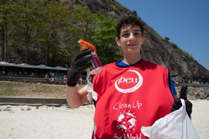 (250921) -- RIO DE JANEIRO, 21 septiembre, 2025 (Xinhua) -- Imagen del 20 de septiembre de 2025 de un voluntario mostrando basura recogida en la Playa de Copacabana, en Río de Janeiro, Brasil. El Día Mundial de la Limpieza es un evento anual que se conmemora cada tercer domingo de septiembre, con el objetivo de combatir el problema global de los residuos sólidos. (Xinhua/Wang Tiancong) (rtg) (ah)