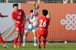 (250918) -- DALIAN, 18 septiembre, 2025 (Xinhua) -- Raimundo Herceg (2-d), de la Pontificia Universidad Católica de Chile, dispara el balón durante el partido masculino del Grupo A entre la Universidad de Beihang de China y la Pontificia Universidad Católica de Chile, en la Copa Mundial Universitaria de Fútbol de la FISU 2025, en Dalian, en la provincia de Liaoning, en el noreste de China, el 18 de septiembre de 2025. (Xinhua/Zheng Huansong) (rtg) (ra) (vf)
