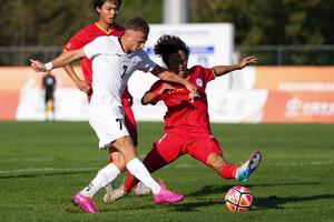 (250918) — DALIAN, 18 septiembre, 2025 (Xinhua) — Pedro Cisternas (i), de la Pontificia Universidad Católica de Chile, dispara el balón durante el partido masculino del Grupo A entre la Universidad de Beihang de China y la Pontificia Universidad Católica de Chile, en la Copa Mundial Universitaria de Fútbol de la FISU 2025, en Dalian, en la provincia de Liaoning, en el noreste de China, el 18 de septiembre de 2025. (Xinhua/Zheng Huansong) (rtg) (ra) (vf)