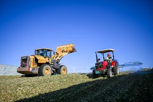 (250918) -- TONGLIAO, 18 septiembre, 2025 (Xinhua) -- Personas trabajan en un campo de maíz, en el poblado de Jurihe, en la bandera de Jarud, en la ciudad de Tongliao, en la región autónoma de Mongolia Interior, en el norte de China, el 18 de septiembre de 2025. (Xinhua/Lian Zhen) (da) (ra) (vf)