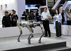 (250919) -- QINGDAO, 19 septiembre, 2025 (Xinhua) -- Un perro robótico es visto en la Exposición Internacional de Electrónica de Consumo de China (CICE, por sus siglas en inglés) 2025, en Qingdao, en la provincia de Shandong, en el este de China, el 19 de septiembre de 2025. Con el tema "La Inteligencia Conecta a Todos, La Inteligencia Artificial Empodera al Futuro", la CICE de este año comenzó aquí el viernes, mostrando tecnologías de vanguardia y productos innovadores. (Xinhua/Li Ziheng) (rtg) (ra) (vf)