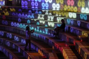 (250919) -- BOGOTA, 19 septiembre, 2025 (Xinhua) -- Imagen del 17 de septiembre de 2025 de personas tomándose una fotografía durante el ensayo general del espectáculo "La Casa Común", una experiencia con video mapping, iluminación y sonido, en el marco de la Bienal Internacional de Arte y Ciudad BOG25, en la Plaza Cultural La Santamaría, en Bogotá, capital de Colombia. (Xinhua/Andrés Moreno) (am) (rtg) (ra) (vf)