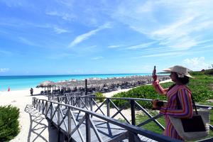 (250918) — CAYO SANTA MARIA, 18 septiembre, 2025 (Xinhua) — Imagen del 16 de septiembre de 2025 de una turista extranjera tomando una fotografía en una playa, en Cayo Santa María, en la provincia Villa Clara, Cuba. La industria turística cubana tiene entre sus principales objetivos incentivar el mercado chino, coincidieron directivos y turoperadores reunidos en Cayo Santa María, al norte del centro de la isla caribeña. (Xinhua/Joaquín Hernández) (jh) (da) (ra) (vf)