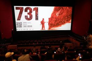 (250919) -- LOS ANGELES, 19 septiembre, 2025 (Xinhua) -- Imagen del 18 de septiembre de 2025 de personas observando la película "Evil Unbound" (El Mal Desatado) en un cine durante su estreno, en Los Angeles, Estados Unidos. "Evil Unbound" (El Mal Desatado), una película de producción china que narra las atrocidades cometidas por la infame Unidad 731 de guerra bacteriológica japonesa durante la Segunda Guerra Mundial, se estrenó el jueves el Los Angeles. (Xinhua/Zeng Hui) (jg) (da) (vf)