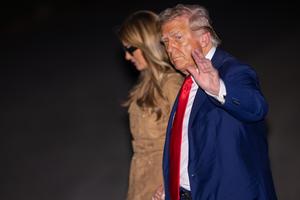 (250919) -- WASHINGTON, 19 septiembre, 2025 (Xinhua) -- Imagen del 18 de septiembre de 2025 del presidente estadounidense, Donald Trump, y la primera dama, Melania Trump, llegando a la Casa Blanca después de una visita de Estado a Reino Unido, en Washington, D.C., Estados Unidos. Trump dijo el jueves que está en desacuerdo con el primer ministro británico, Keir Starmer, con respecto al plan de Reino Unido de reconocer un Estado palestino. (Xinhua/Hu Yousong) (rtg) (ra) (vf)
