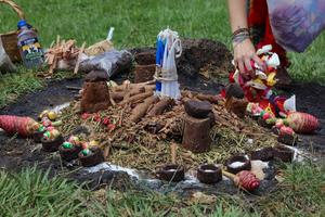 (250921) — SANTA ANA, 21 septiembre, 2025 (Xinhua) — Una mujer coloca pétalos de flores en un altar de fuego, durante una ceremonia maya en celebración por el equinoccio de otoño, en el Parque Arqueológico Tazumal, en el municipio de Chalchuapa, en el departamento de Santa Ana, El Salvador, el 21 de septiembre de 2025. (Xinhua/Alexander Peña) (ap) (rtg) (ah)