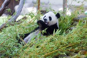 (250921) -- MADRID, 21 septiembre, 2025 (Xinhua) -- Imagen del 20 de septiembre de 2025 del panda gigante Jin Xi alimentándose de bambú en el Zoo Aquarium de Madrid, en Madrid, España. El zoológico celebró el sábado una serie de actividades culturales y educativas, entre ellas presentaciones acrobáticas, para celebrar el quinto cumpleaños de dos pandas gigantes. El macho Jin Xi y la hembra Zhu Yu, ambos nacidos en 2020, llegaron al zoológico el 29 de abril del año pasado. (Xinhua/Gustavo Valiente) (oa) (ah)