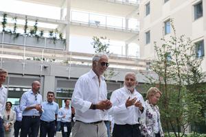 (250918) -- MILAN, 18, 2025 (Xinhua) -- Giovanni Malago (c), presidente del Comité Organizador de Milán Cortina 2026, visita la Villa Olímpica y Paralímpica de Milán Cortina 2026, en Milán, Italia, el 18 de septiembre de 2025. (Xinhua/Li Jing) (da) (ra) (vf)
