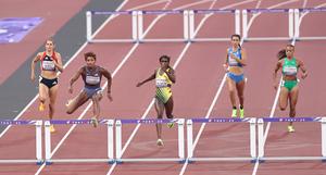 (250918) -- TOKIO, 18 septiembre, 2025 (Xinhua) -- Imagen del 17 de septiembre de 2025 de Shiann Salmon (c), de Jamaica, y Anna Cockrell (2-i), de Estados Unidos, compitiendo en la semifinal de 400m con vallas femeninos en el Campeonato Mundial de Atletismo 2025, en Tokio, Japón. (Xinhua/Jia Haocheng) (jg) (ah)