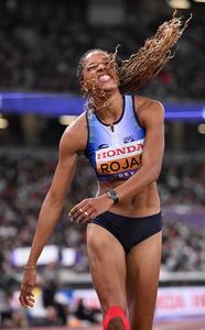 (250918) -- TOKIO, 18 septiembre, 2025 (Xinhua) -- Yulimar Rojas, de Venezuela, reacciona durante la final de salto triple femenino en el Campeonato Mundial de Atletismo 2025, en Tokio, Japón, el 18 de septiembre de 2025. (Xinhua/Song Yanhua) (da) (ra) (vf)