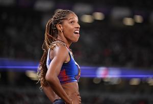 (250918) -- TOKIO, 18 septiembre, 2025 (Xinhua) -- Yulimar Rojas, de Venezuela, reacciona durante la final de salto triple femenino, en el Campeonato Mundial de Atletismo 2025, en Tokio, Japón, el 18 de septiembre de 2025. (Xinhua/Song Yanhua) (rtg) (ra) (ce)