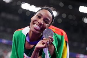 (250918) -- TOKIO, 18 septiembre, 2025 (Xinhua) -- Thea Lafond, de la Mancomunidad de Dominica, posa al término de la final de salto triple femenino, en el Campeonato Mundial de Atletismo 2025, en Tokio, Japón, el 18 de septiembre de 2025. (Xinhua/Jia Haocheng) (rtg) (ra) (ce)
