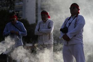 (250919) -- CIUDAD DE MEXICO, 19 septiembre, 2025 (Xinhua) -- Personas participan en una ceremonia conmemorativa por las víctimas de los sismos del 19 de septiembre de 1985 y 2017, en la Ciudad de México, capital de México, el 19 de septiembre de 2025. (Xinhua/Francisco Cañedo) (fc) (oa) (ra) (vf)