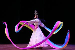 (250921) -- YANGON, 21 septiembre, 2025 (Xinhua) -- Imagen del 20 de septiembre de 2025 de una artista de la compañía de Ópera Wu, de la provincia de Zhejiang, en el este de China, realizando una presentación en el Teatro Nacional de Yangón, en Myanmar. El Teatro Nacional de Yangón cobró vida durante el fin de semana, su gran salón rebosando de color, música y aplausos mientras el público disfrutó de la Ópera Wu, una forma de arte centenaria de la provincia china de Zhejiang. (Xinhua/Myo Kyaw Soe) (rtg) (ah)