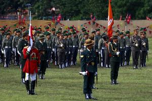 (250919) -- KATMANDU, 19 septiembre, 2025 (Xinhua) -- Soldados participan en un desfile para celebrar el Día de la Constitución, en Katmandú, Nepal, el 19 de septiembre de 2025. (Xinhua/Sulav Shrestha) (rtg) (ra) (vf)