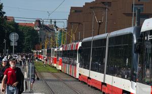 (250921) -- PRAGA, 21 septiembre, 2025 (Xinhua) -- Históricos y contemporáneos tranvías son vistos durante un desfile de tranvías, en Praga, República Checa, el 21 de septiembre de 2025. Un desfile de tranvías se llevó a cabo aquí el domingo como parte de las celebraciones para conmemorar los 150 años del transporte público urbano en la capital checa. (Xinhua/Dana Kesnerova) (oa) (ah)