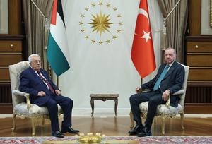 (250918) -- ANKARA, 18 septiembre, 2025 (Xinhua) -- El presidente turco, Recep Tayyip Erdogan (d), se reúne con el presidente palestino, Mahmoud Abbas, en Ankara, Turquía, el 18 de septiembre de 2025, para abordar la escalada de la ofensiva israelí en Gaza y los acontecimientos regionales más amplios, informó la presidencia turca en un comunicado. (Xinhua/Mustafa Kaya) (jg) (ah) (ce)