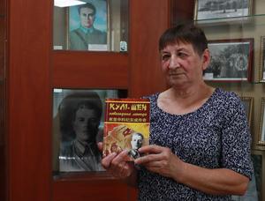 (250918) -- CHEREPYN, 18 septiembre, 2025 (Xinhua) -- Imagen del 28 de agosto de 2025 de Mariia Ihosheva, sobrina de 68 años de Grigori Kulishenko, narrando la historia de la vida de su tío, en la Escuela Kulishenko, en Cherepyn, Ucrania. Nacido en Cherepyn en 1903, el piloto Grigori Kulishenko fue enviado en 1939 para liderar un grupo de pilotos soviéticos en apoyo de la resistencia de China contra la invasión japonesa. (Xinhua/Li Dongxu) (da) (ra) (ce)
