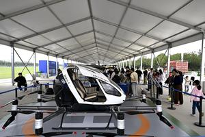(250922) -- HEFEI, 22 septiembre, 2025 (Xinhua) -- Imagen del 21 de septiembre de 2025 de visitantes aprendiendo sobre una aeronave de despegue y aterrizaje vertical eléctrico (eVTOL, por sus siglas en inglés) durante la Convención Mundial de Manufactura 2025, en Hefei, en la provincia de Anhui, en el este de China. La actual Convención Mundial de Manufactura 2025 muestra las diversas aplicaciones de la tecnología no tripulada. (Xinhua/Huang Bohan) (rtg) (ah) (vf)