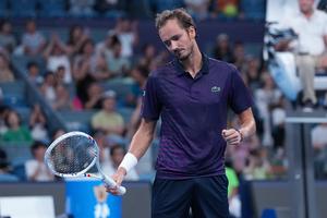 (250922) -- HANGZHOU, 22 septiembre, 2025 (Xinhua) -- Imagen del 21 de septiembre de 2025 de Daniil Medvedev, de Rusia, reaccionando durante el partido de cuartos de final entre Daniil Medvedev, de Rusia, y Wu Yibing, de China en el torneo de tenis Hangzhou Open 2025 de la ATP, en Hangzhou, en la provincia de Zhejiang, en el este de China. (Xinhua/Huang Zongzhi) (rtg) (ah) (ce)
