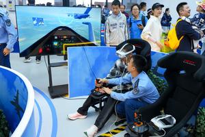 (250920) -- CHANGCHUN, 20 septiembre, 2025 (Xinhua) -- Un niño experimenta la simulación de vuelo de avión durante las actividades de la jornada de puertas abiertas de aviación 2025 de la Fuerza Aérea del Ejército Popular de Liberación (EPL) de China y el Salón Aeronáutico de Changchun, en Changchun, en la provincia de Jilin, en el noreste de China, el 20 de septiembre de 2025. El evento que se lleva a cabo aquí del 19 al 23 de septiembre, muestra de forma integral la historia y la modernización de la Fuerza Aérea del EPL a través de presentaciones de acrobacias aéreas, exposiciones de equipos y diversas actividades interactivas. (Xinhua/Xu Chang) (jg) (rtg) (ce)