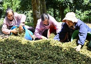 (250922) -- BEIJING, 22 septiembre, 2025 (Xinhua) -- Agricultores clasifican anís recién cosechado, en la aldea de Laofangzi del poblado de Muchang, en el distrito de Maguan, en la prefectura autónoma de las etnias zhuang y miao de Wenshan, en la provincia de Yunnan, en el suroeste de China, el 22 de septiembre de 2025. (Xinhua/Xiong Pingxiang) (oa) (ah) (vf)