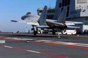 (250922) -- BEIJING, 22 septiembre, 2025 (Xinhua) -- Imagen de archivo de un avión embarcado J-15T realizando un aterrizaje con detención, en el portaaviones chino Fujian. La Armada china anunció el lunes que los aviones embarcados J-15T, J-35 y KongJing-600 han completado con éxito sus pruebas iniciales de despegues asistidos por catapulta electromagnética y aterrizajes en el portaviones Fujian. (Xinhua/Li Tang) (rtg) (ah) (vf)