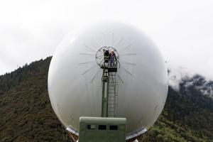 (250920) -- NYINGCHI, 20 septiembre, 2025 (Xinhua) -- Imagen del 18 de septiembre de 2025 de técnicos inspeccionando los cables durante el experimento de observación atmosférica con el dirigible cautivo "Jimu-1", en Lulang, Nyingchi, en la región autónoma de Xizang, en el suroeste de China. Científicos chinos llevaron a cabo recientemente el experimento de observación atmosférica con el dirigible cautivo "Jimu-1" en Lulang, Nyingchi, en la región autónoma de Xizang, en el suroeste de China, que se espera proporcione una nueva perspectiva para desentrañar los misterios del ecosistema de la meseta Qinghai-Tíbet. (Xinhua/Jin Liwang) (jg) (rtg) (ce)