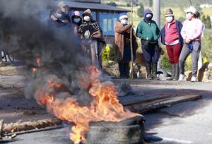 (250922) -- IMBABURA, 22 septiembre, 2025 (Xinhua) -- Un neumático incendiado es visto en un bloqueo realizado por indígenas durante el paro nacional indefinido en rechazo a la reciente eliminación del subsidio al diésel, en la provincia de Imbabura, en el norte de Ecuador, el 22 de septiembre de 2025. El presidente de Ecuador, Daniel Noboa, afirmó el lunes que no cederá ante las presiones de ciertos grupos sociales que quieren desestabilizar el país, ante el paro nacional indefinido que inició el movimiento indígena en rechazo a la reciente eliminación del subsidio al diésel decretada por el Gobierno. (Xinhua/Ricardo Landeta) (rl) (oa) (ah) (vf)