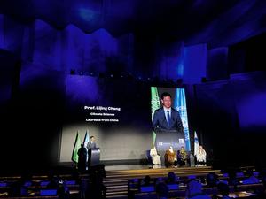 (250920) -- PARIS, 20 septiembre, 2025 (Xinhua) -- Imagen del 19 de septiembre de 2025 de Cheng Lijing, investigador del Instituto de Física Atmosférica de la Academia de Ciencias de China, hablando durante la ceremonia del Premio UNESCO-Al Fozan para la Promoción de Jóvenes Científicos en los campos de la ciencia, la tecnología, la ingeniería y las matemáticas, en París, Francia. Cheng fue galardonado con el premio por "sus contribuciones para proporcionar evidencia científica sobre el cambio climático marino como base fundamental para la evaluación de riesgos, la adaptación al cambio climático y su mitigación". (Xinhua/Luo Yu) (oa) (ra) (ce)