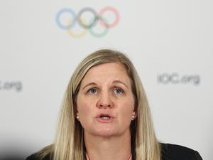 (250920) -- MILAN, 20 septiembre, 2025 (Xinhua) -- Imagen del 19 de septiembre de 2025 de la presidenta del Comité Olímpico Internacional (COI), Kirsty Coventry, asistiendo a una conferencia de prensa celebrada por la Junta Ejecutiva del COI, en Milán, Italia. (Xinhua/Li Jing) (oa) (ra) (ce)